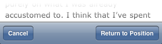 Before Instapaper Pro 2.2, I got frequent emails from customers who were upset that they had inadvertently tapped the status bar, which scrolls to the top of the article and loses their position. I understood completely, since losing your read position is a form of minor data loss.