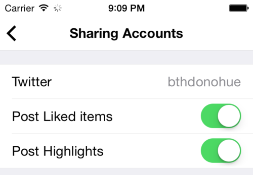 In true Instapaper fashion, your highlights are seamlessly synced across all of your devices. We’ve also added the option for you to post automatically your highlights to your linked accounts. It’s disabled by default, but if you turn it on, you can do nifty things like automatically Tweet your highlights, or post them to a Tumblr blog, or drop them into Evernote.