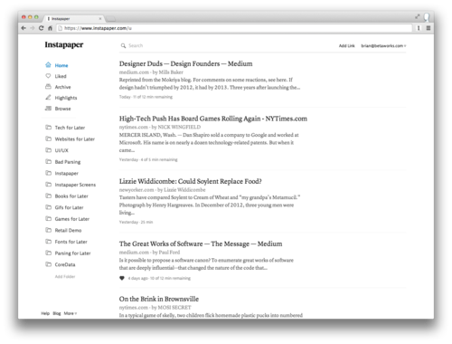 Along with highlights, we’ve completely revamped the Instapaper website, incorporating the feedback you’ve provided us over the last few months. At long last, the Instapaper website is a fully-functional file system for managing, organizing, and acting on the articles and videos you see and save online.