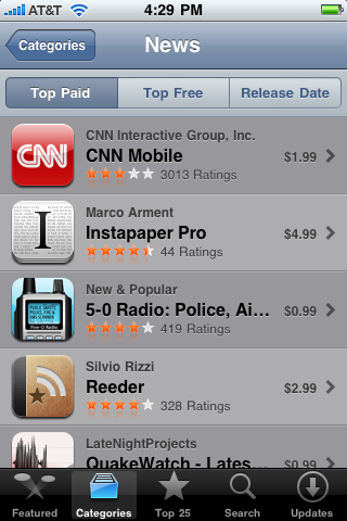 Instapaper Pro just took the #2 spot in the News category of paid apps in the App Store!