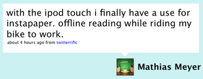 [Instapaper named "Best Publication App" by Best App Ever Awards](http://bestappever.com/awards/2010/) Instapaper won a Best App Ever award for the second year in a row! ([Last year’s](http://blog.instapaper.com/post/383913939).) - Winner, [Best Publication...