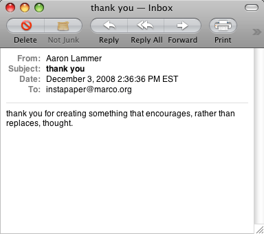 [Instapaper named "Best Publication App" by Best App Ever Awards](http://bestappever.com/awards/2010/) Instapaper won a Best App Ever award for the second year in a row! ([Last year’s](http://blog.instapaper.com/post/383913939).) - Winner, [Best Publication...